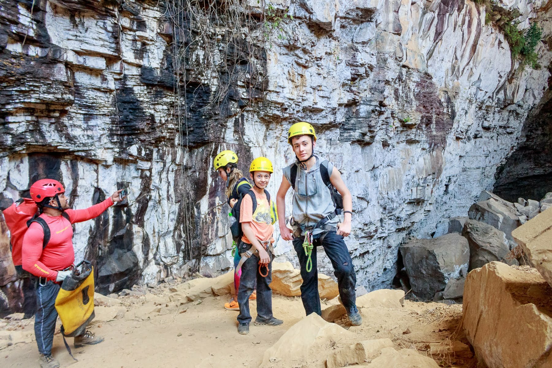 Descemos de Rapel no Buraco das Araras, entramos em uma caverna apertada, nadamos num lago e escalamos de volta! Esse foi um BOM dia.